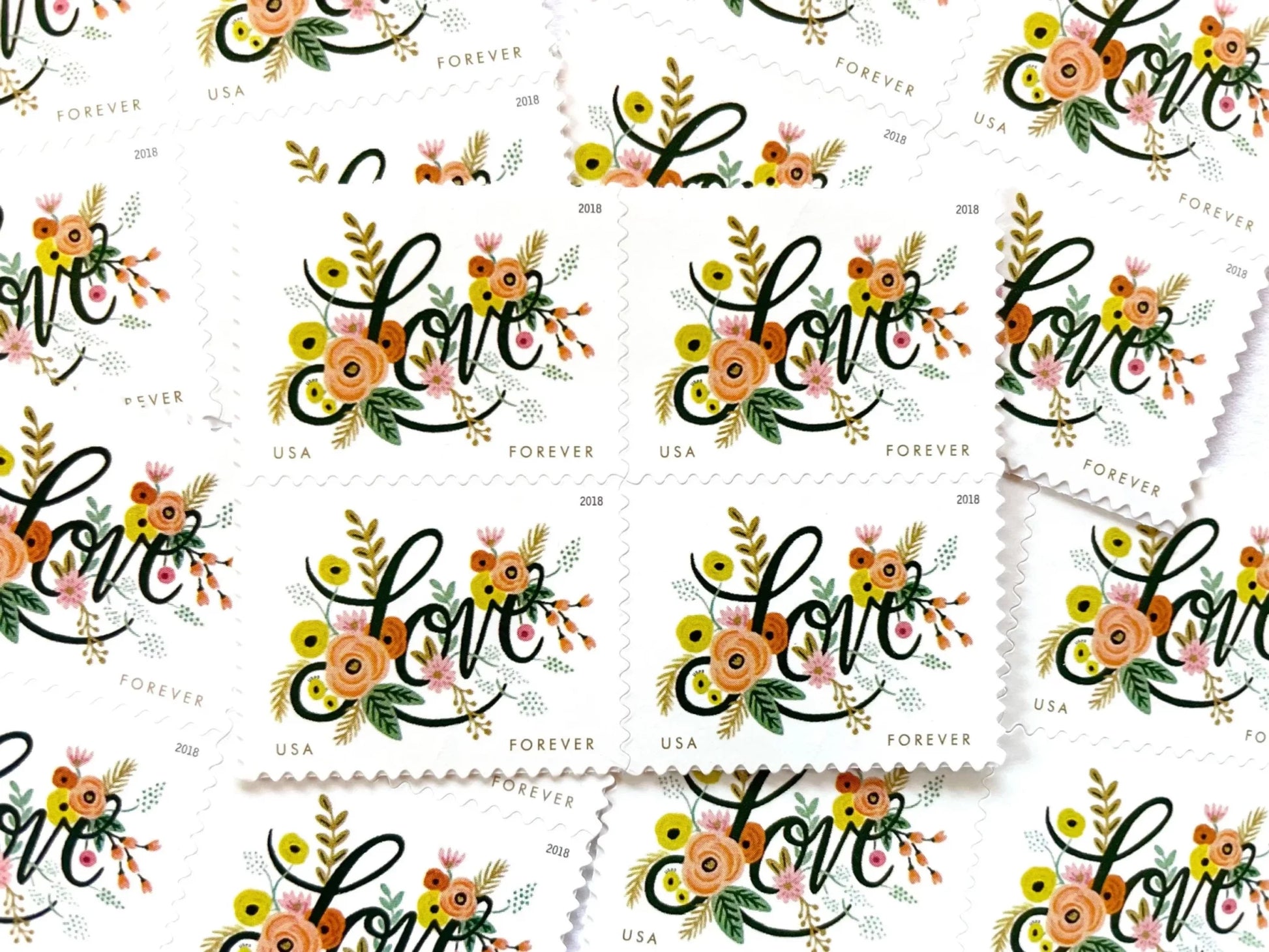 Celebrate romance and affection with the 2018 Love Flourishes Forever Stamps, featuring an elegant heart-shaped floral design symbolizing love and beauty. Perfect for wedding invitations, Valentine’s Day cards, anniversary greetings, or heartfelt correspondence, these stamps add a graceful and romantic touch to every envelope. As Forever Stamps, they always retain the value of First-Class Mail regardless of future postage increases, ensuring both practicality and sentiment. A meaningful choice for couples, families, and collectors who appreciate timeless romance in their mailings.